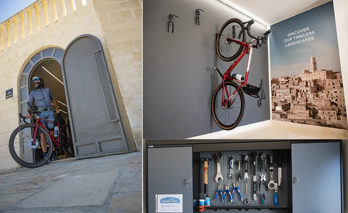 If you have to choose the hotel, I recommend the Alvino Relais - Mulino Contemporaneo, a bike hotel that offers all the best services for cycle tourists and with a super-equipped bike room ready to welcome even the most demanding bike. Precisely thanks to the wall map on which there are 8 itineraries downloadable with QRcode, I discovered this gravel ring tour in Matera, in particular towards the Murgia Timone panoramic point which I had often put in my sights but where not I had never managed to arrive in my first sorties into the city.