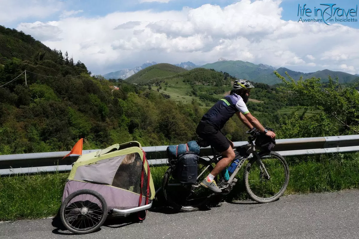 Leo, abituato da anni a indossare calzoncini baggy, non ha voluto rinunciare alla comodità di questo indumento dotato di fondello staccabile. Completa il suo outfit una maglia tecnica confortevole e una giacca in softshell con cappuccio da utilizzare durante le intemperie, situazione molto comune nella pratica del cicloturismo.