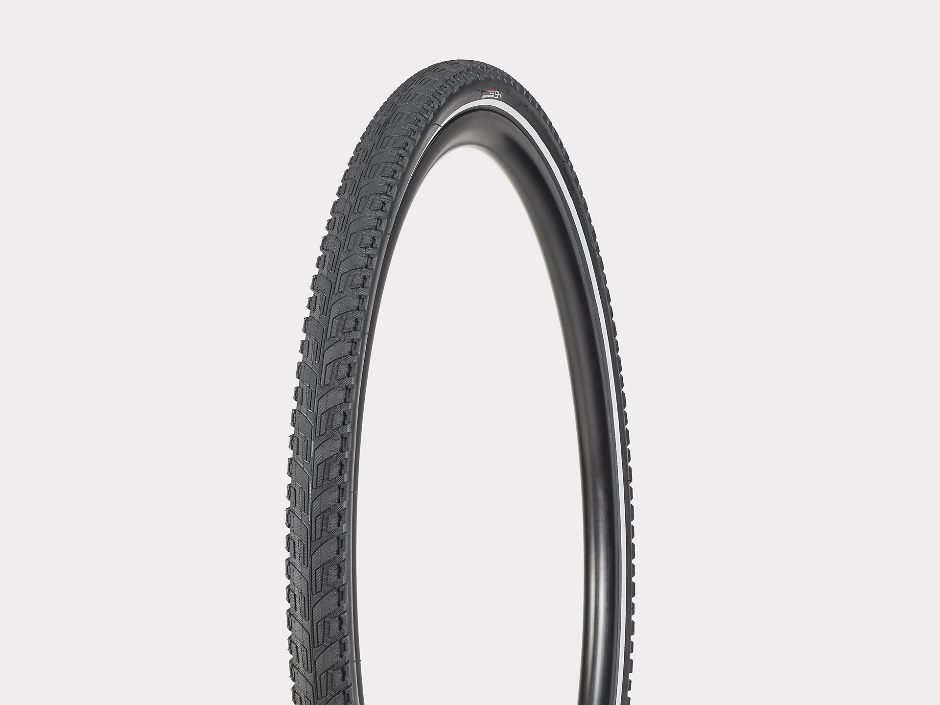 Questo pneumatico da cicloturismo di casa Trek/Bontrager è stato realizzato per affrontare l’asfalto e gli sterrati degli itinerari di tutti i giorni. La protezione antiforatura hard-case ultimate proteggono la buona riuscita di ogni uscita, mentre la fascia riflettente laterale aumenta la visibilità anche in condizioni difficili. Carcassa antitaglio per evitare di rimanere a terra con vetri e oggetti appuntiti.