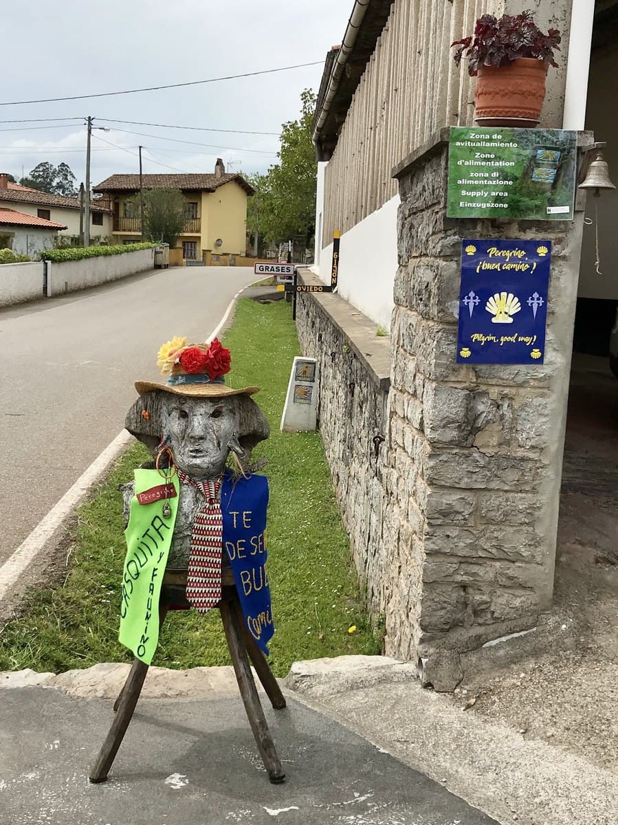 Raggiungo Cobreces dove si possono ammirare i due campanili della chiesa dedicata, anche lei, a San Pedro. La chiesa è dipinta di un rosso acceso e all’esterno è presente una piccola opera di metallo dedicata ai pellegrini.