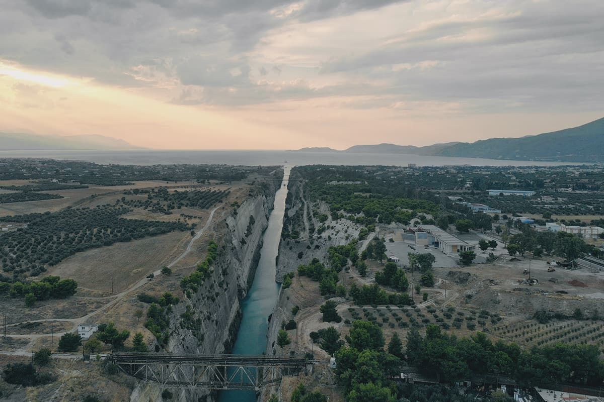 Sono le 16.00 passate, abbiamo raggiunto l'asfalto, ma ci restano ancora almeno altri 55 km per Corinto. "Fortunatamente" si tratta della EO8 da Megara a Kalamari con un piacevole saliscendi costiero, al tramonto, quando finalmente raggiungiamo l'Istmo di Corinto, in un'atmosfera surreale, carica di tensione e odore di petrolio delle navi che passano lungo la costa.