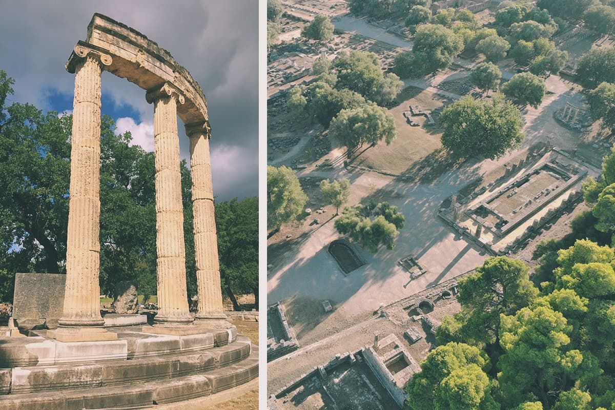 Questa città dell'Elide fu infatti teatro dei primi giochi in onore di Zeus, nel 776 a.C. e oggi accoglie i visitatori tra i resti di quel mitico mondo, tra l'antico braciere, il Tempio di Hera, il Ginnasio, lo Stadio e affascinanti colonnati, tra cui il Tempio a Zeus, con la statua in oro e avorio realizzata da Fidia, poi scomparsa, e considerata come una delle sette meraviglie del mondo. Noi ci facciamo assorbire dalla potenza evocativa di questi luoghi, sognandoci giocatori olimpici... un po' essendolo, con la nostra traversata a pedali del Peloponneso.