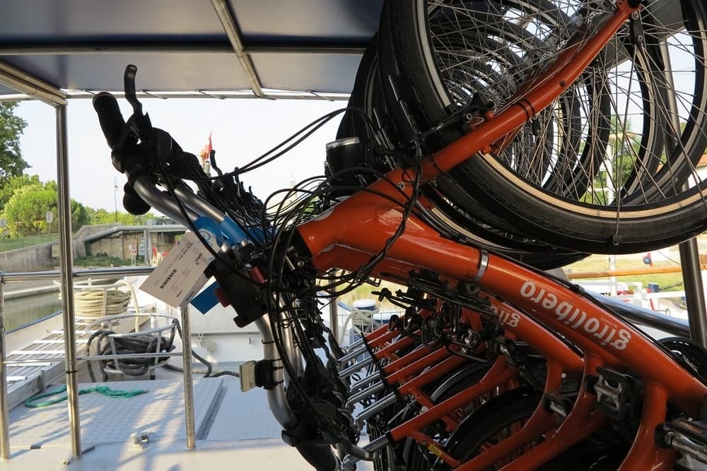 Il ponte è praticamente davanti alla stazione e non faccio in tempo a sistemare lo zaino sulle spalle: sono già arrivato. Eccole: l’Estello e Soleo, leggo il nome e salgo su quella giusta... si inizia il viaggio in Provenza e Camargue bici e barca.
