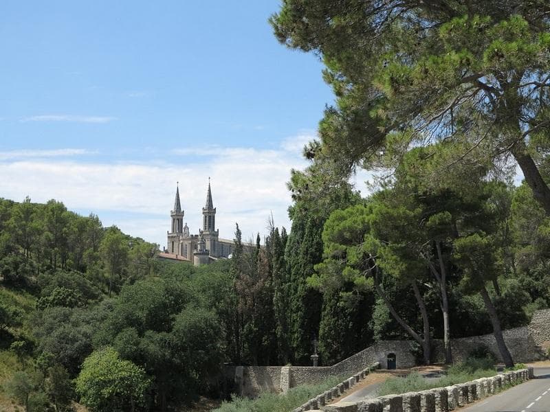 Il cartello sul rettilineo annuncia L’Abbaye St Michel de Frigolet. Non è un'abbazia sulla cima di un monte o al centro della valle, tutto quanto qua intorno è costruito in luoghi particolari, sarebbe interessante capire perché è stata costruita in questo punto. Dalla strada che percorriamo noi non è in vista come le altre costruzioni viste fino ad ora.