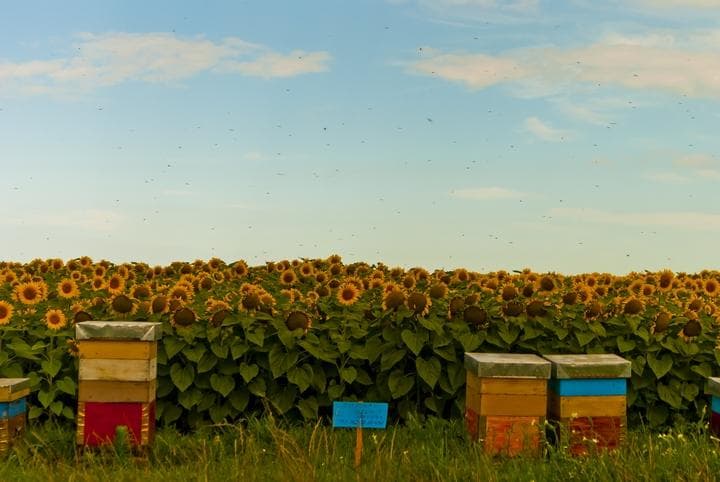 Il paesaggio e leggermente collinare, si possono ammirare campi coltivati, in prevalenza girasoli e mais e numerosi alveari colorati!