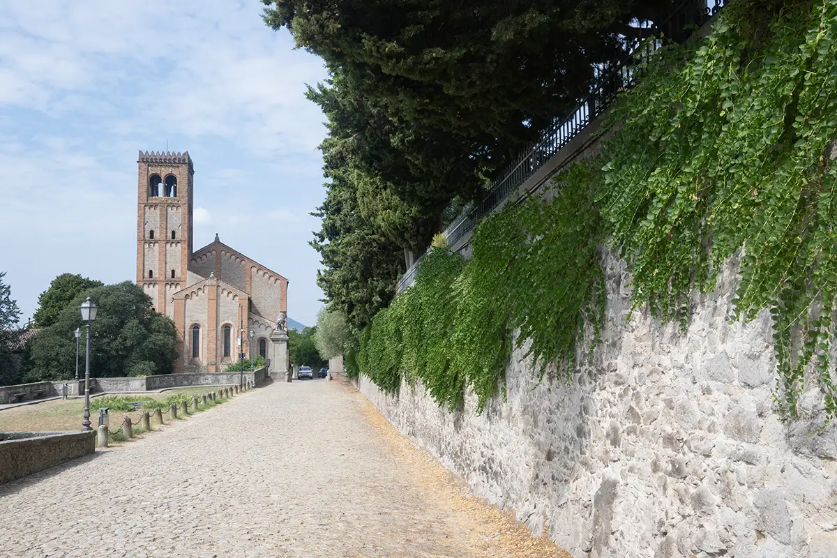 Usciti dal giardino dell'Abbazia, si tiene la destra imboccando una strada sterrata lungo il perimetro delle mura del complesso ecclesiastico. Il percorso qui è piacevole e si snoda ai piedi di piccole colline prima di raggiungere i margini dell'area termale di Abano e Montegrotto Terme, entrambe raggiungibili con percorsi ciclabili secondari ben segnalati.