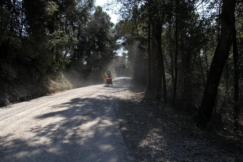 La dolcezza dell'incedere pianeggiante si interrompe quando si scorge, sopra alle nostre teste, il rientro alla civiltà. Due anime vivono a Vagliagli ma l'asfalto ci fa ritornare d'improvviso nel XXI secolo. L'illusione si ripete poco più avanti, quando lasciamo sulla sinistra la striscia liscia e scorrevole per immergerci nuovamente nella polvere dello sterrato.