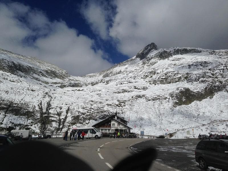 Risalgo uno ad uno i tornanti, mentre pedalo posso ammirare la grande valle che sto per lasciarmi alle spalle, una visuale davvero unica; alla mia sinistra la strada percorsa poco fa con la ferrovia che scorre poco più sotto, mentre nel fondovalle, il fiume Rodano, poco più che un torrente, inizia la sua lunghissima corsa verso il mediterraneo e sulla destra, in fondo, l'ardita strada che si arrampica verso il Grimselpass, un’emozione unica, il mio sguardo a malapena riesce ad abbracciare quest'incanto naturale. Scorrendo il quinto tornante, al suo interno, si incontra il caratteristico Hotel Belvedere, posto a quasi 2300 metri di altitudine, mentre nella parte esterna sulla sinistra, poco dopo il parcheggio antistante all'albergo, l'eccezionale punto di osservazione sul ghiacciaio che dà origine al Rodano, il Belvedere sur le glacier source du Rhône, alcuni cartelli indicano che a pagamento è anche possibile visitare una grotta scavata nel ghiaccio. Da qui un ultimo breve tratto di strada mi separa dal Furkapass, due tornanti, un paio di chilometri ancora e si arriva in cima, accompagnati da un forte e gelido vento.