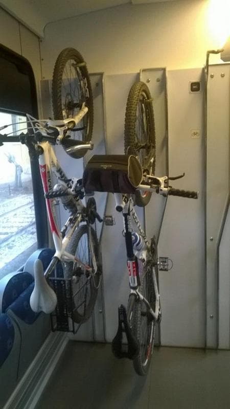 Affrontare una nuova Odissea l'indomani, un viaggio di ritorno in treno, lento, stancante, macchinoso, cambi, attese, volti, una giornata intera. E osservare le bici appese al gancio oscillare mute come la lira di Quasimodo, e intanto guardare il mondo là fuori che regala distese di mare e poi lunghe teorie di ulivi. Oscillare come le bici, come le lire, come le chitarre appese e mai più suonate, come le scarpe da calcio attaccate al chiodo, combattuti tra la gioia, l'orgoglio e la nuova amarezza per una speranza di vita che è sempre e solo nostalgia.